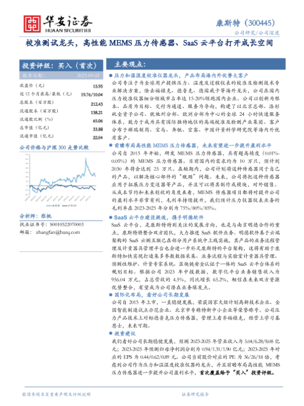 【华安证券】【20230902】校准测试龙头,高性能MEMS压力传感器、SaaS云平台打开成长空间-25页 行业研究