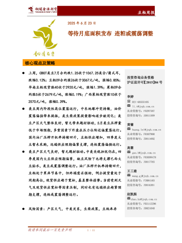 【铜冠金源期货】【20250623】豆粕周报_等待月底面积发布_连粕或震荡调整-11页 证券期货研究报告