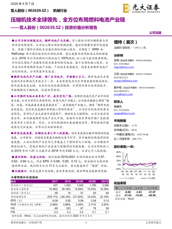 【光大证券】【20200407】20200407-光大证券-雪人股份-002639.SZ-投资价值分析报告:压缩机技术全球领先,全方位布局燃料电池产业链-33页 行业研究