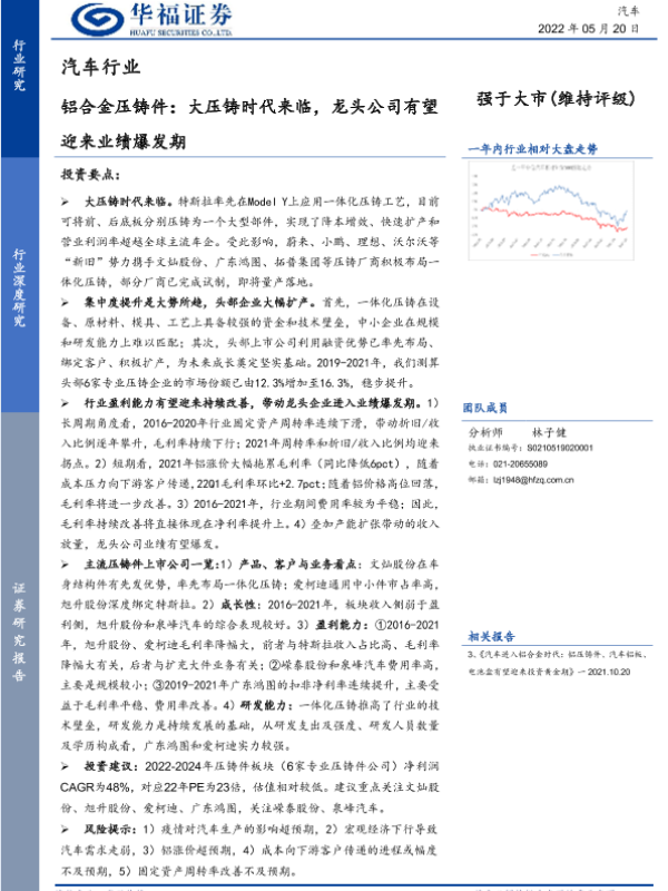 【华福证券】【20220520】汽车行业:铝合金压铸件:大压铸时代来临,龙头公司有望迎来业绩爆发期-21页 行业研究