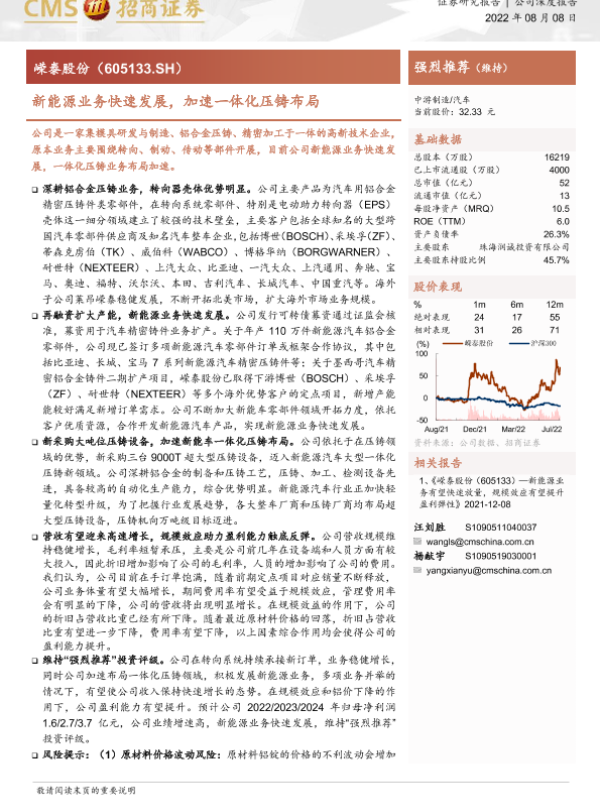 【海通证券】【20220808】嵘泰股份-新能源业务快速发展,加速一体化压铸布局-16页 证券期货研究报告