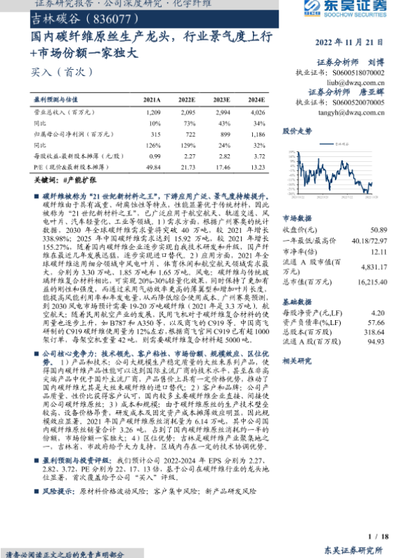 【东吴证券】【20221121】国内碳纤维原丝生产龙头,行业景气度上行+市场份额一家独大-18页 行业研究