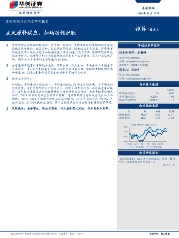 【华创证券】【20190927】透明质酸行业深度研究报告:立足原料供应,加码功能护肤-30页 行业研究