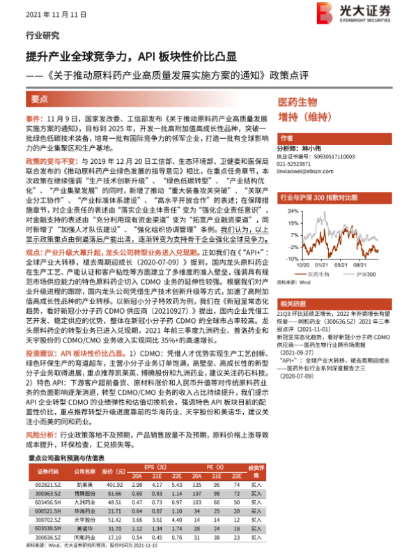 【光大证券】【20211111】关于推动原料药产业高质量发展实施方案的通知政策点评-2页 行业研究