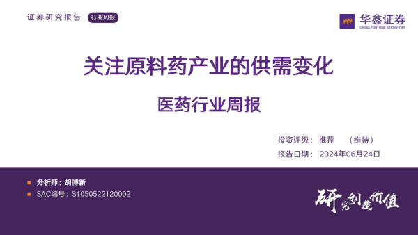 【华鑫证券】【20240624】医药行业周报:关注原料药产业的供需变化-34页 行业研究