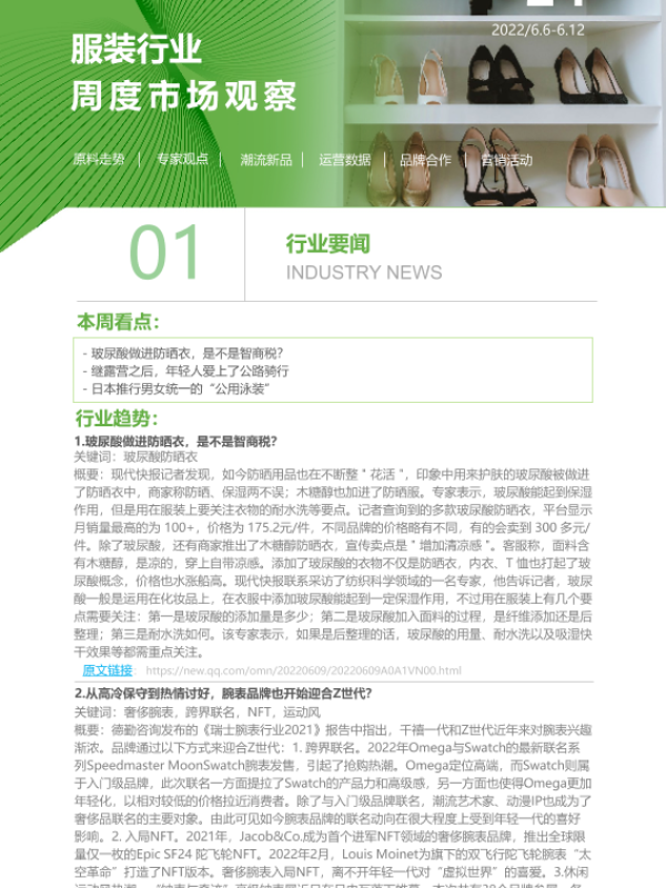 【艾瑞咨询】【20220612】2022年第24周:服装行业周度市场观察-8页 行业研究