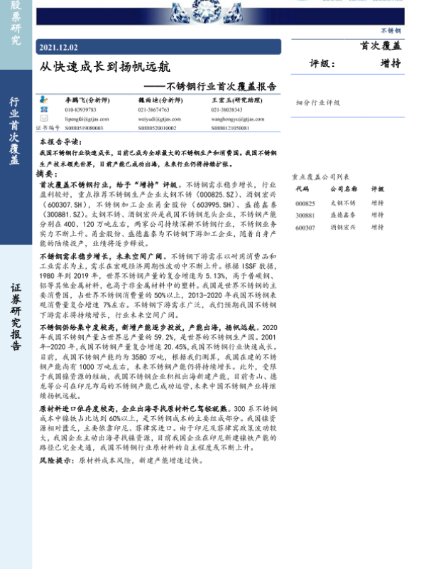 【国泰君安证券】【20211202】不锈钢行业首次覆盖报告:从快速成长到扬帆远航-23页 行业研究