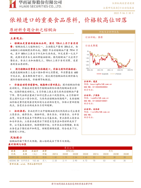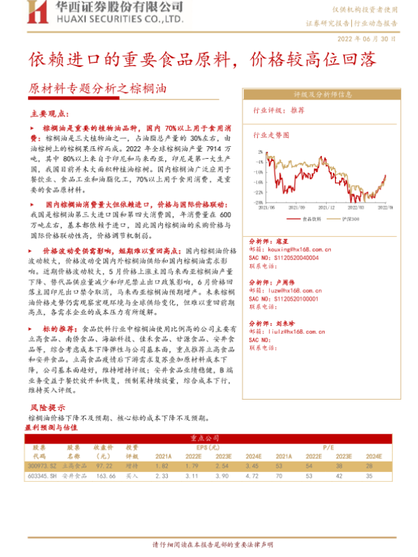 【华西证券】【20220630】原材料专题分析之棕榈油:依赖进口的重要食品原料,价格较高位回落-15页 证券期货研究报告