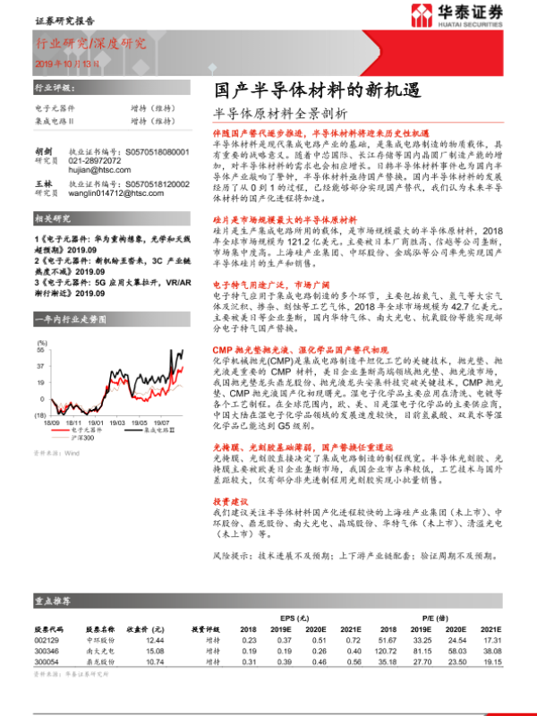 【华泰证券】【20191013】半导体原材料全景剖析:国产半导体材料的新机遇-78页 行业研究
