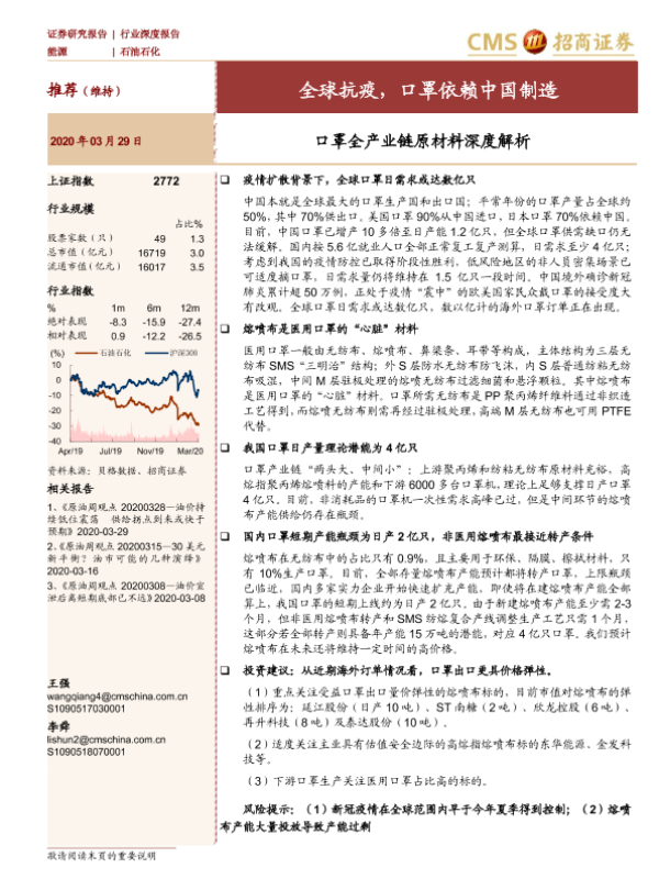 【海通证券】【20200329】全球抗疫,口罩依赖中国制造-40页 行业研究