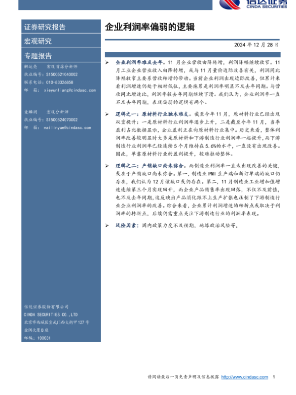 【信达证券】【20241228】企业利润率偏弱的逻辑-10页 宏观策略