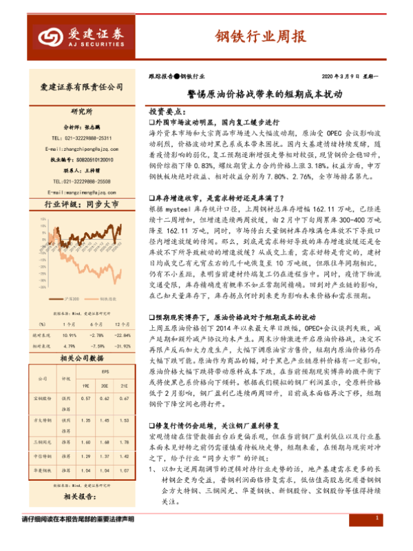 【爱建证券】【20200309】20200309-爱建证券-钢铁行业周报:警惕原油价格战带来的短期成本扰动-24页 行业研究