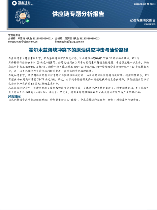 【国金证券】【202603】供应链专题分析报告:霍尔木兹海峡冲突下的原油供应冲击与油价路径-8页 证券期货研究报告