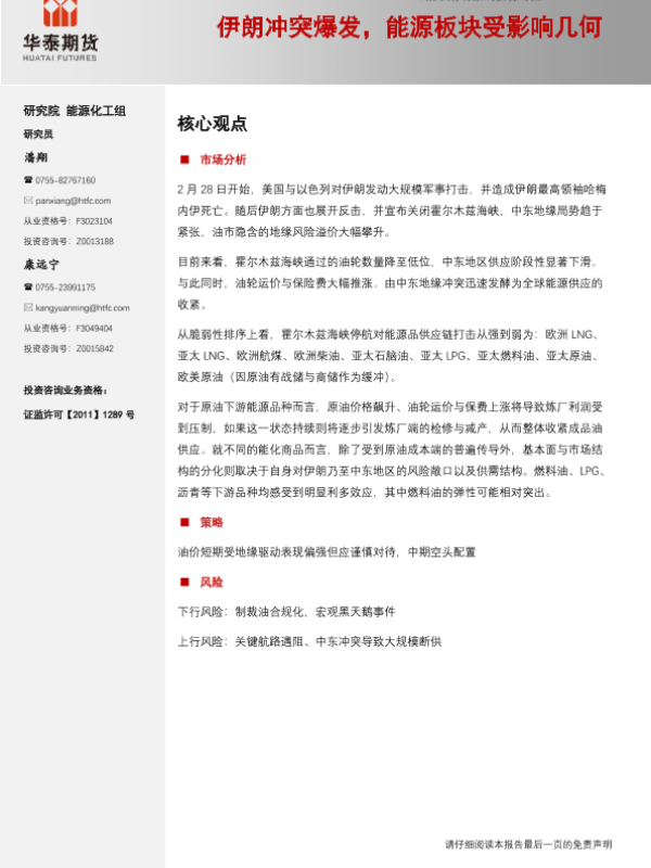 【华泰期货】【202603】伊朗冲突爆发,能源板块受影响几何-15页 证券期货研究报告