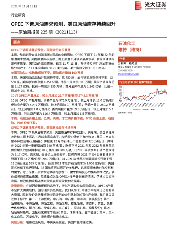 【光大证券】【20211113】OPEC下调原油需求预测,美国原油库存持续回升-11页 行业研究