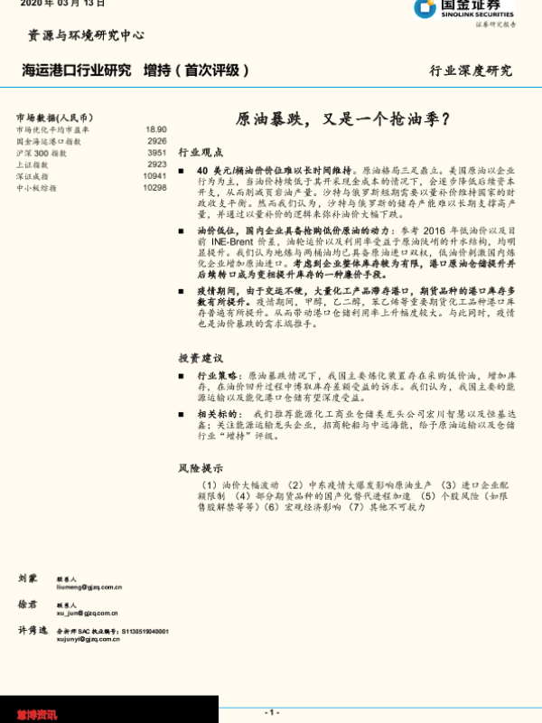 【国金证券】【20200313】海运港口行业研究:原油暴跌,又是一个抢油季?-16页 行业研究