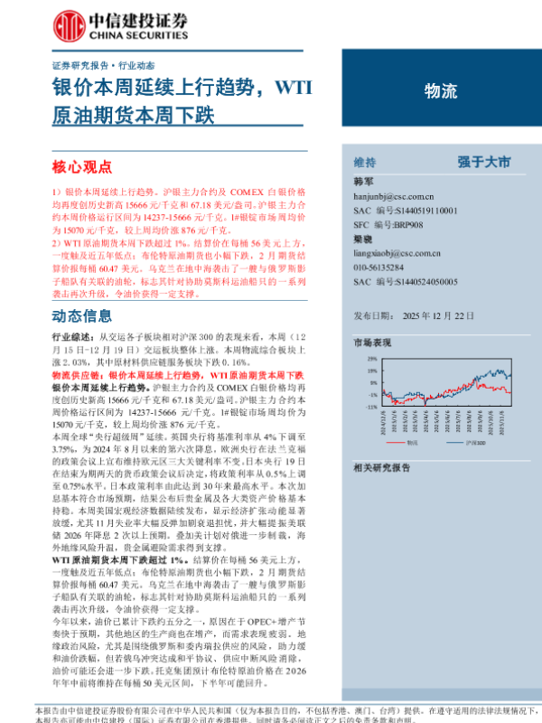 【中信建投证券】【202512】物流行业:银价本周延续上行趋势,WTI原油期货本周下跌-14页 证券期货研究报告