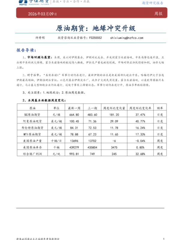 【宁证期货】【202603】原油期货:地缘冲突升级-7页 证券期货研究报告