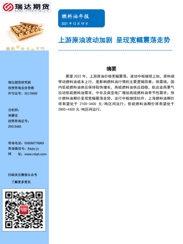 【瑞达期货】【20211219】燃料油年报:上游原油波动加剧,呈现宽幅震荡走势-18页 行业研究