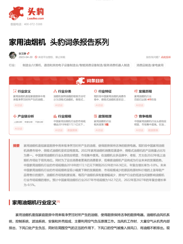 【头豹研究院】【20230706】家用油烟机 头豹词条报告系列-18页 行业研究