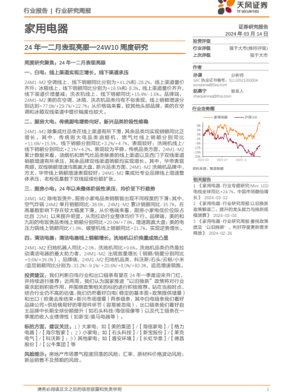【天风证券】【20240314】家用电器行业24W10周度研究:24年一二月表现亮眼-13页 行业研究