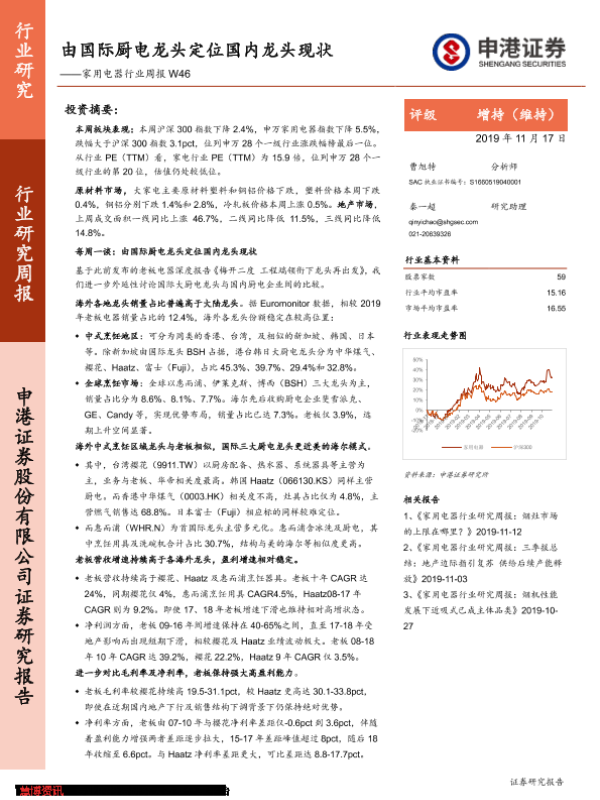 【申港证券】【20191117】家用电器行业周报W46:由国际厨电龙头定位国内龙头现状-19页 行业研究