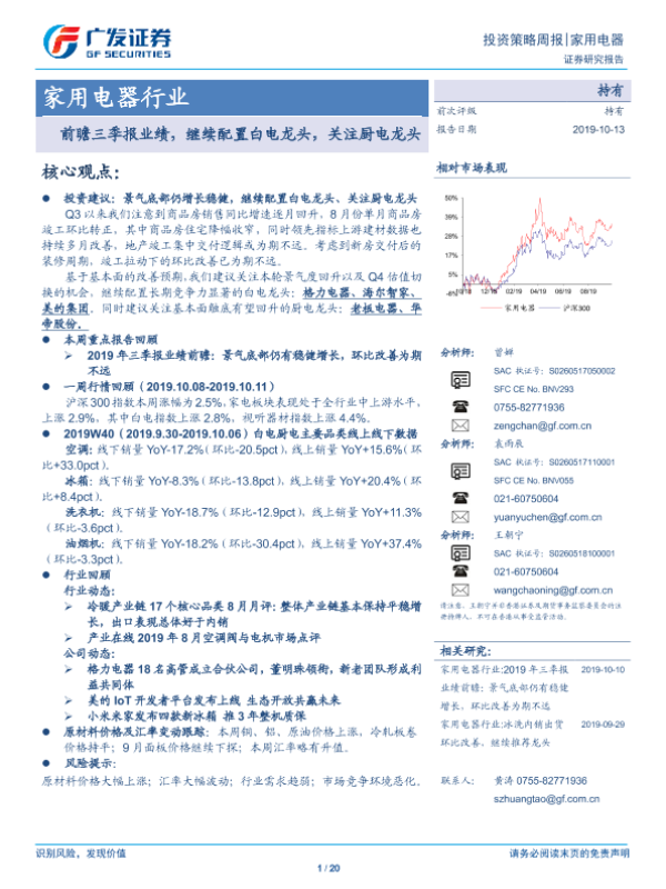 【广发证券】【20191013】20191013-广发证券-家用电器行业投资策略周报:前瞻三季报业绩,继续配置白电龙头,关注厨电龙头-20页 行业研究