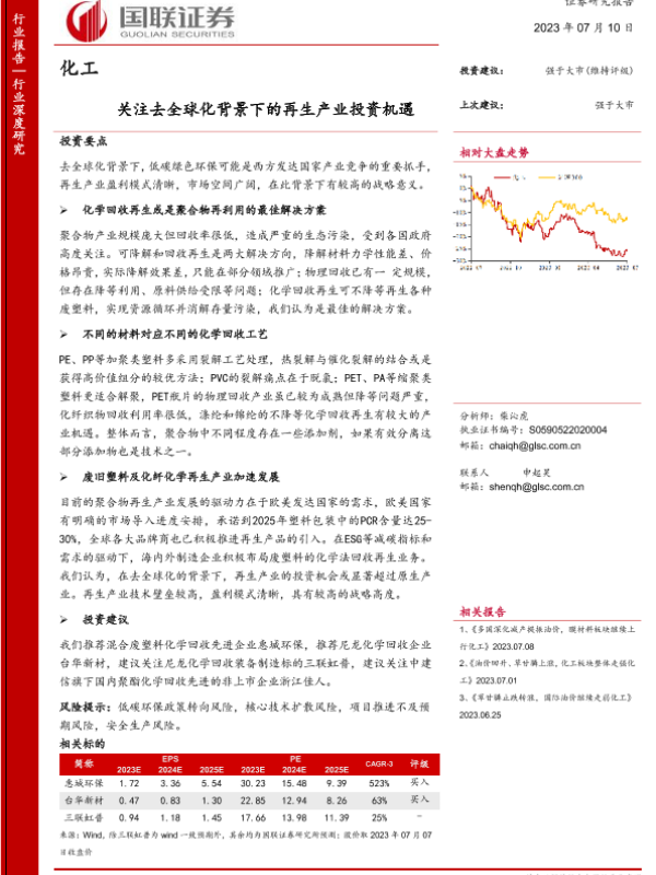 【国联证券】【20230710】化工行业:关注去全球化背景下的再生产业投资机遇-49页 行业研究