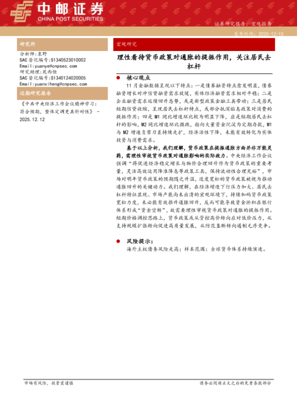 【中邮证券】【202512】理性看待货币政策对通胀的提振作用,关注居民去杠杆-26页 证券期货研究报告