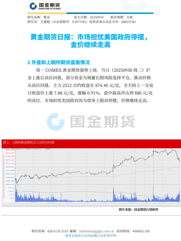 【国金期货】【202509】市场担忧美国政府停摆_金价继续走高-4页 证券期货研究报告