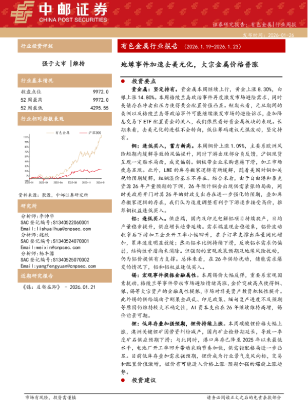 【中邮证券】【202601】证券研究报告:有色金属|行业周报-12页 证券期货研究报告