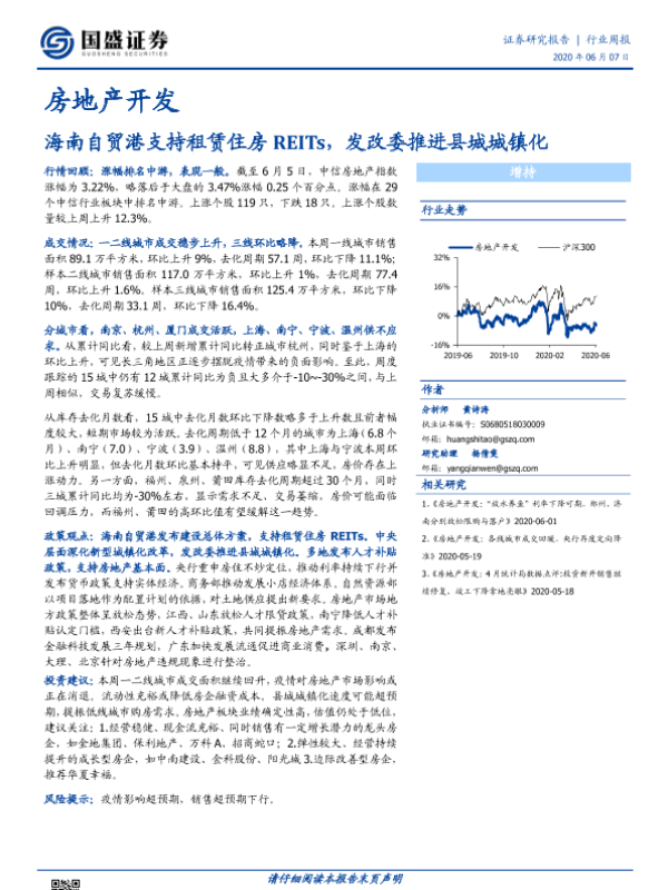 【国盛证券】【20200607】房地产开发行业周报:海南自贸港支持租赁住房REITs,发改委推进县城城镇化-14页 行业研究
