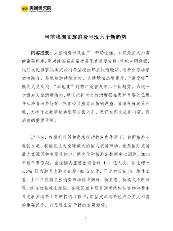 【美团】【20241225】2024当前我国文旅消费呈现六个新趋势报告-11页 行业研究
