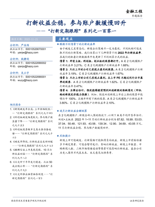 【华安证券】【20221121】“打新定期跟踪”系列之一百零一:打新收益企稳,参与账户数缓慢回升-21页 行业研究