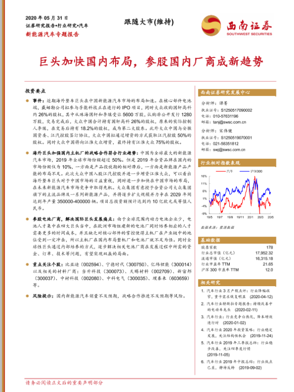 【西南证券】【20200531】新能源汽车专题报告:巨头加快国内布局,参股国内厂商成新趋势-11页 行业研究