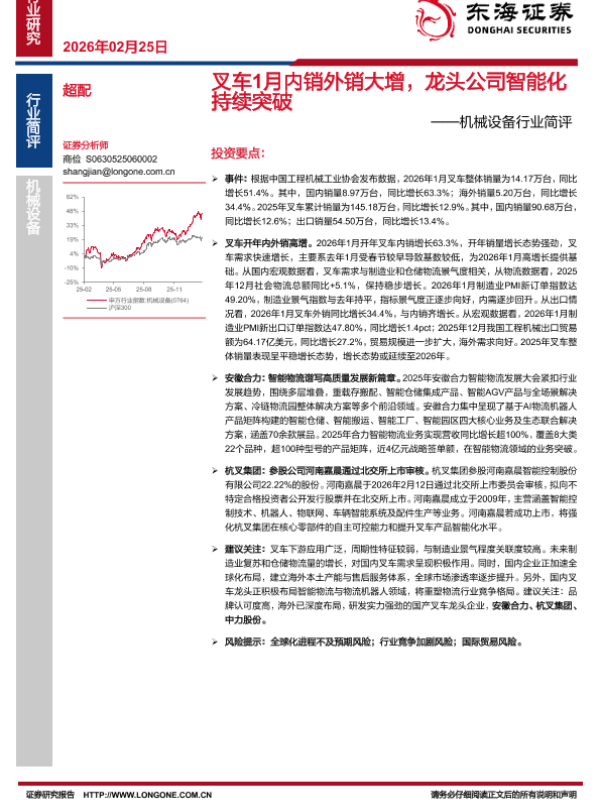 【东海证券】【202602】叉车1月内销外销大增,龙头公司智能化持续突破-2页 证券期货研究报告
