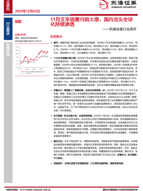 【东海证券】【2025】11月叉车销量内销大增,国内龙头全球化持续渗透-2页 证券期货研究报告