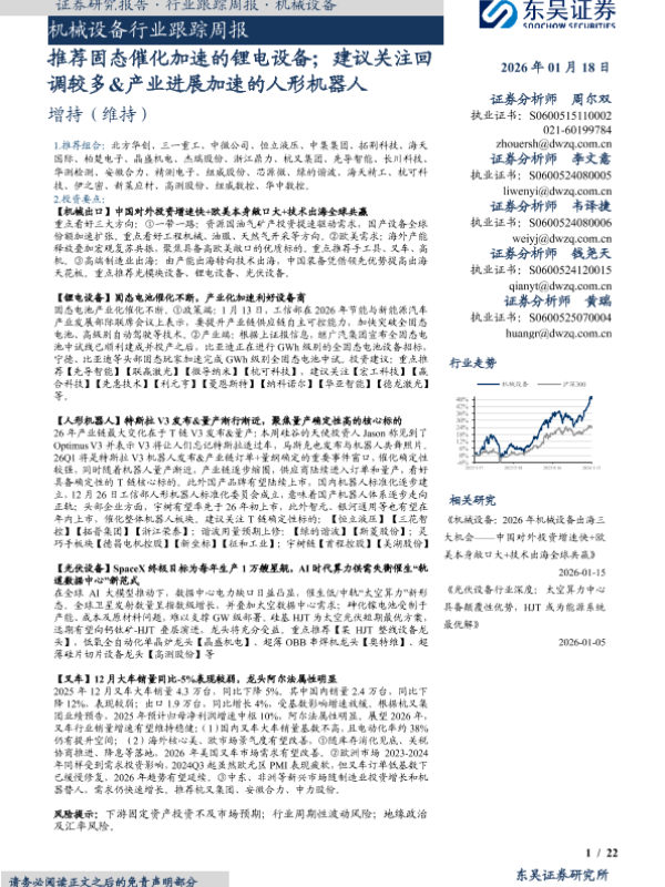 【东吴证券】【202601】机械设备行业跟踪周报-22页 证券期货研究报告