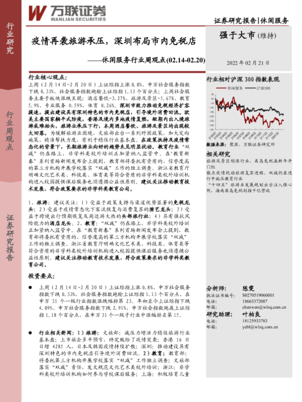 【万联证券】【20220221】疫情再袭旅游承压,深圳布局市内免税店-10页 行业研究