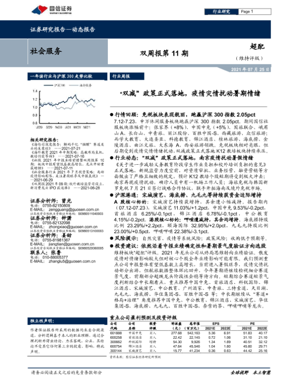 【国信证券】【20210725】社会服务双周报第11期:“双减”政策正式落地,疫情灾情扰动暑期情绪-9页 行业研究