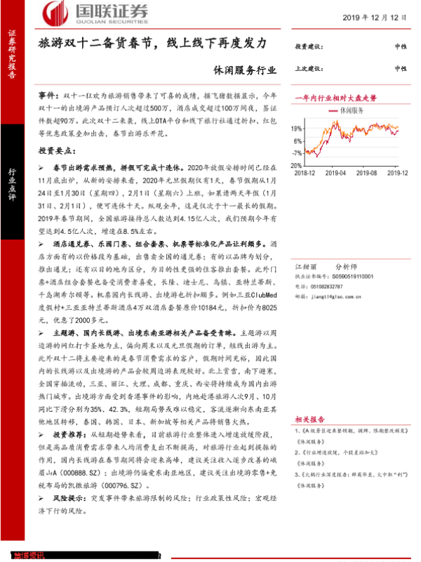 【国联证券】【20191212】休闲服务行业:旅游双十二备货春节,线上线下再度发力-3页 行业研究