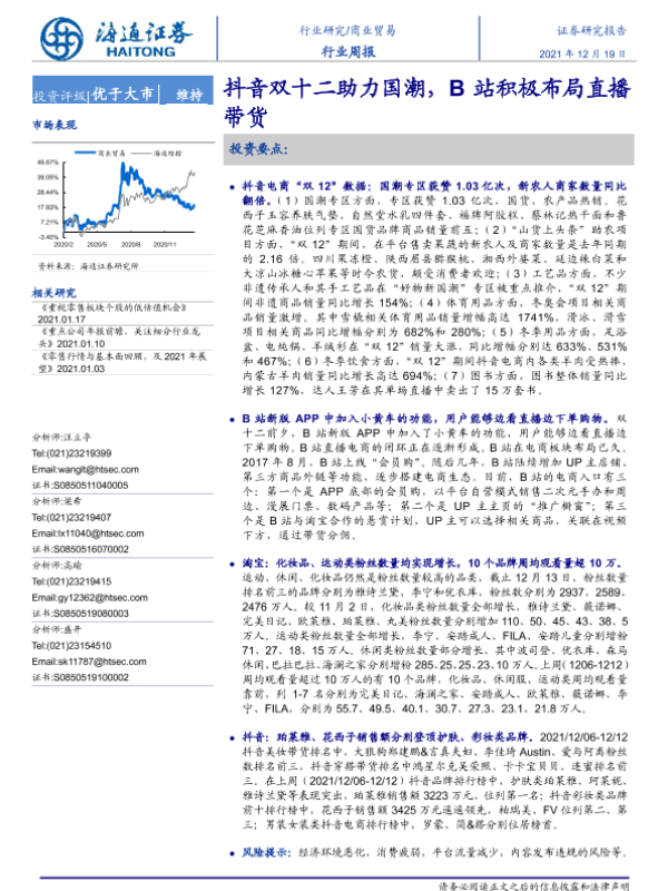 【海通证券】【20211219】商业贸易行业周报:抖音双十二助力国潮,B站积极布局直播带货-10页 行业研究