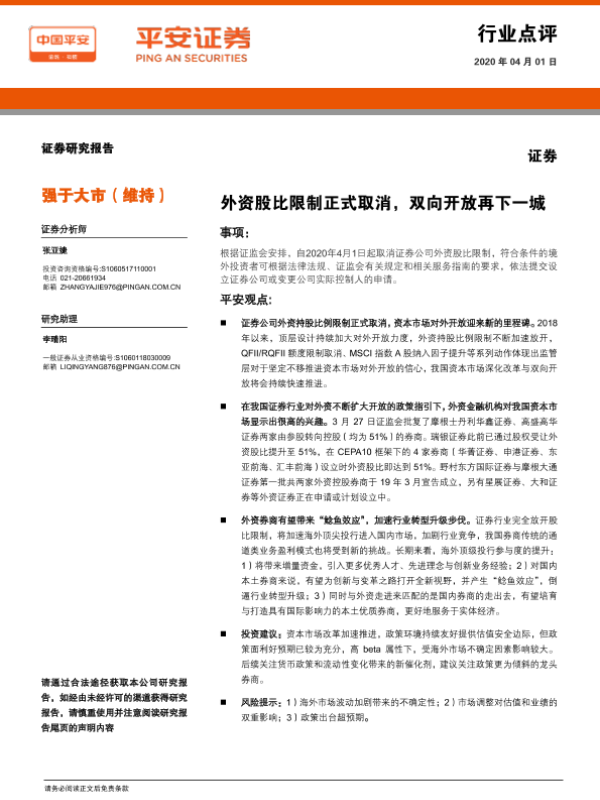 【平安证券】【20200401】证券:外资股比限制正式取消,双向开放再下一城-2页 行业研究