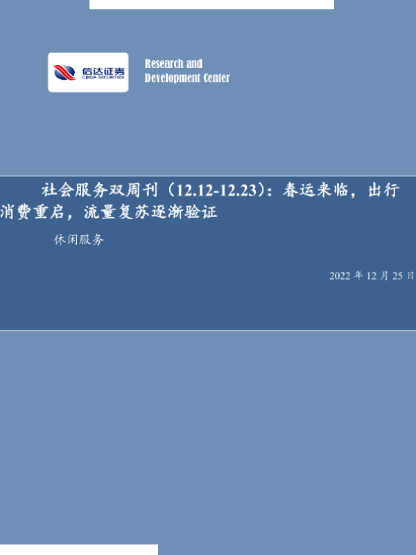 【信达证券】【20221225】社会服务行业双周刊:春运来临,出行消费重启,流量复苏逐渐验证-20页 行业研究