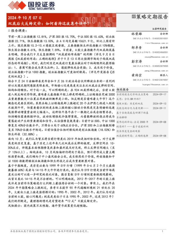 【国投证券】【20241007】双底后大反转定价:如何看待这波急牛快牛?-28页 行业研究
