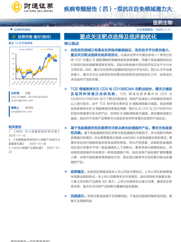 【财通证券】【202511】医药生物行业疾病专题报告(四):双抗在自免领域潜力大,重点关注靶点选择及临床前优化-46页 证券期货研究报告