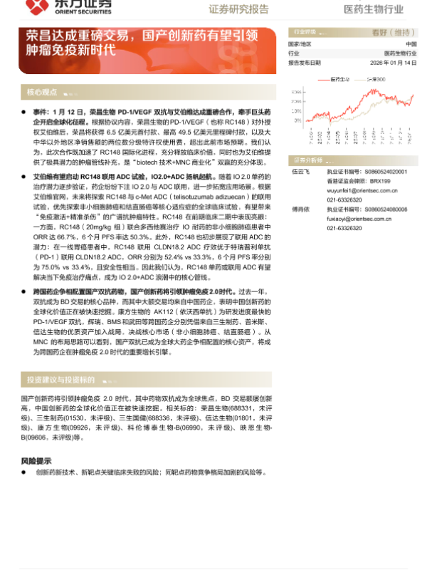 【东方证券】【202601】荣昌达成重磅交易,国产创新药有望引领肿瘤免疫新时代-3页 证券期货研究报告