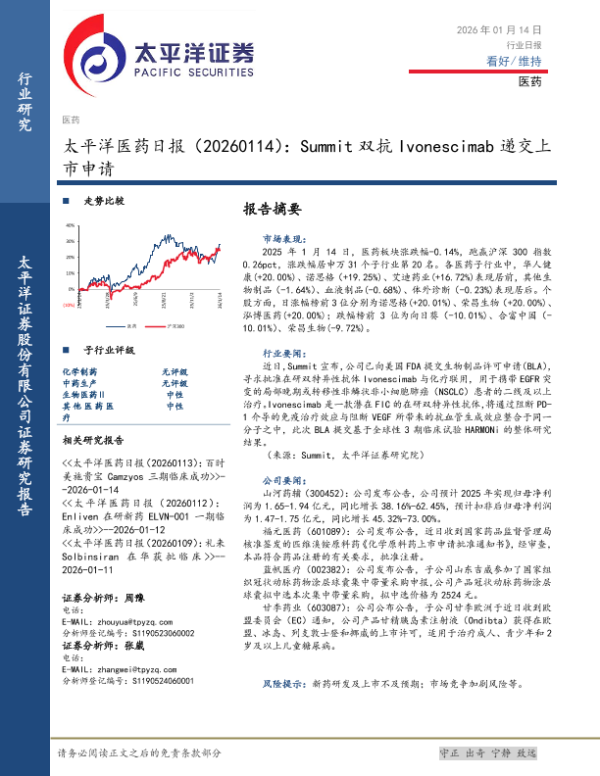 【太平洋证券】【202601】太平洋医药日报(20260114):Summit双抗 Ivonescimab递交上市申请-3页 行业研究