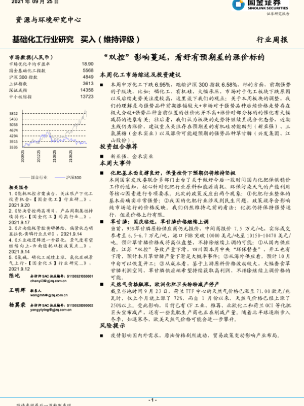 【国金证券】【20210925】基础化工行业周报:“双控”影响蔓延,看好有预期差的涨价标的-26页 行业研究