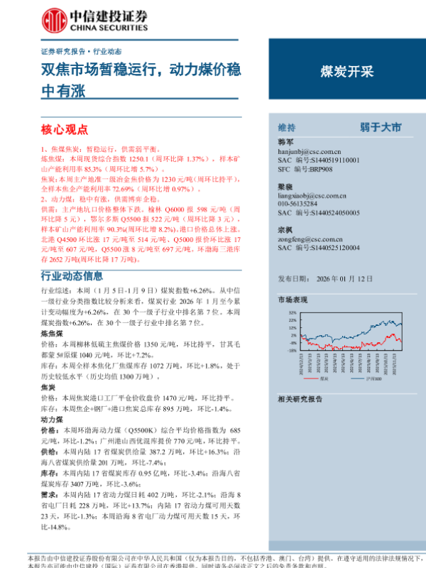 【中信建投证券】【202601】双焦市场暂稳运行,动力煤价稳中有涨-27页 证券期货研究报告